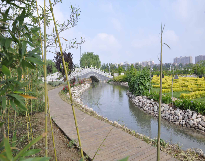 园区环境优美,一年四季常绿,三季鲜花盛开,名贵树木花草点缀,自然景观和中西文化典型雕塑融为一体,成为中国西文化的缩影;金水河贯穿园区,形成子母龙水系,加之地形自南向北逐渐升高,东西自然隆起,形成风水宝地。