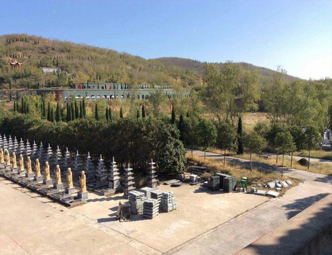 园区现已建成雄伟的山门牌楼,高大壮观,气势恢宏,道路和公路绿化规划的墓区依山而建,错落有致,层次分明,长廊,水榭,景亭,花园,祭坛,金水桥,坐山大佛点缀,其中布局合理。增添了无限秀色,礼仪大厅,塔亭、阁、园建在山顶与山脉之中,人文走廊及汉白玉台阶景景相连,背靠群山龙脊,青岚叠翠,喷泉放生池、长廊、人文景观点缀其中,开屏列账,宽敞明亮,有专用祭拜台,享受帝王之尊贵,存埋神位设计独特。